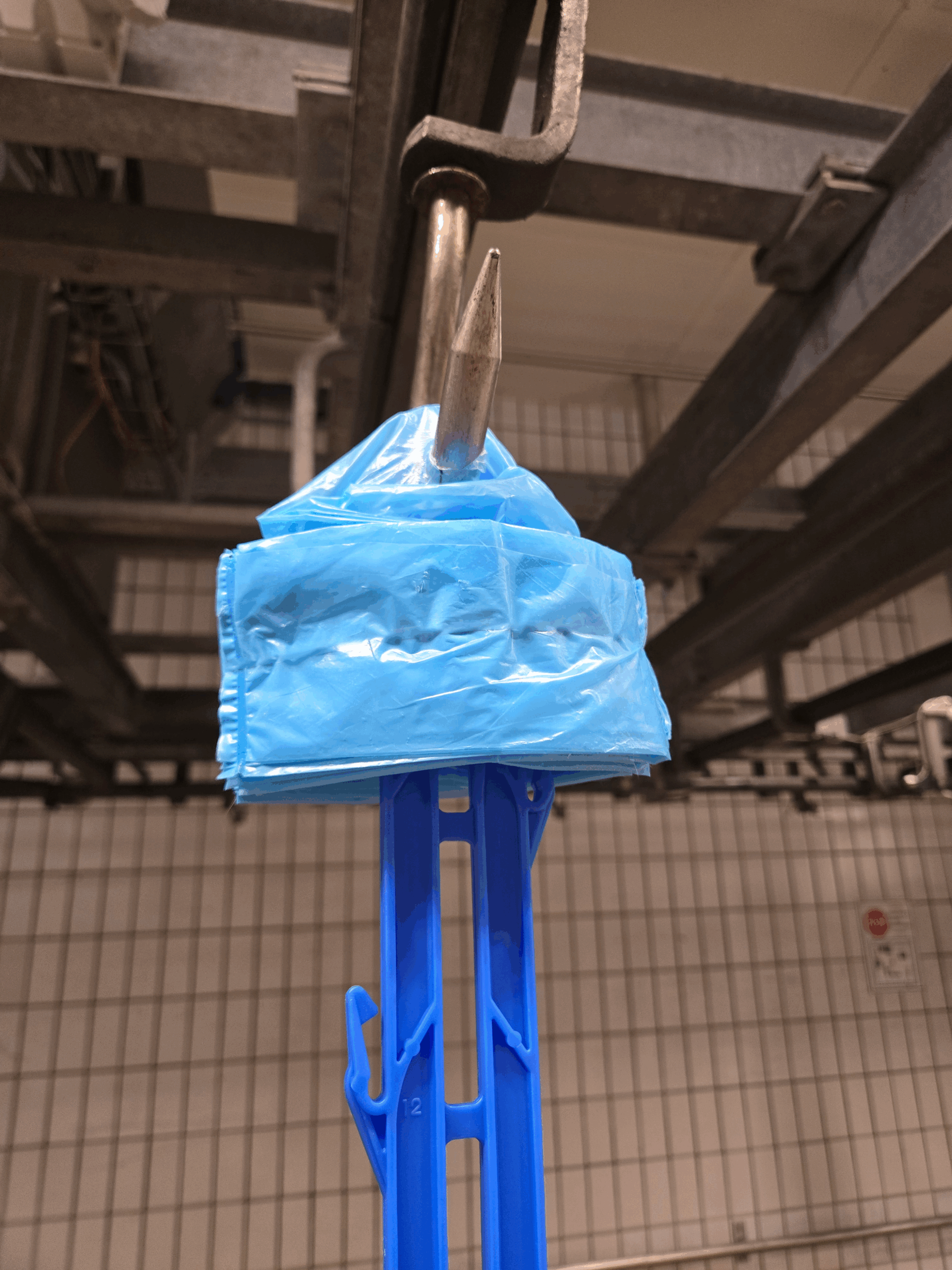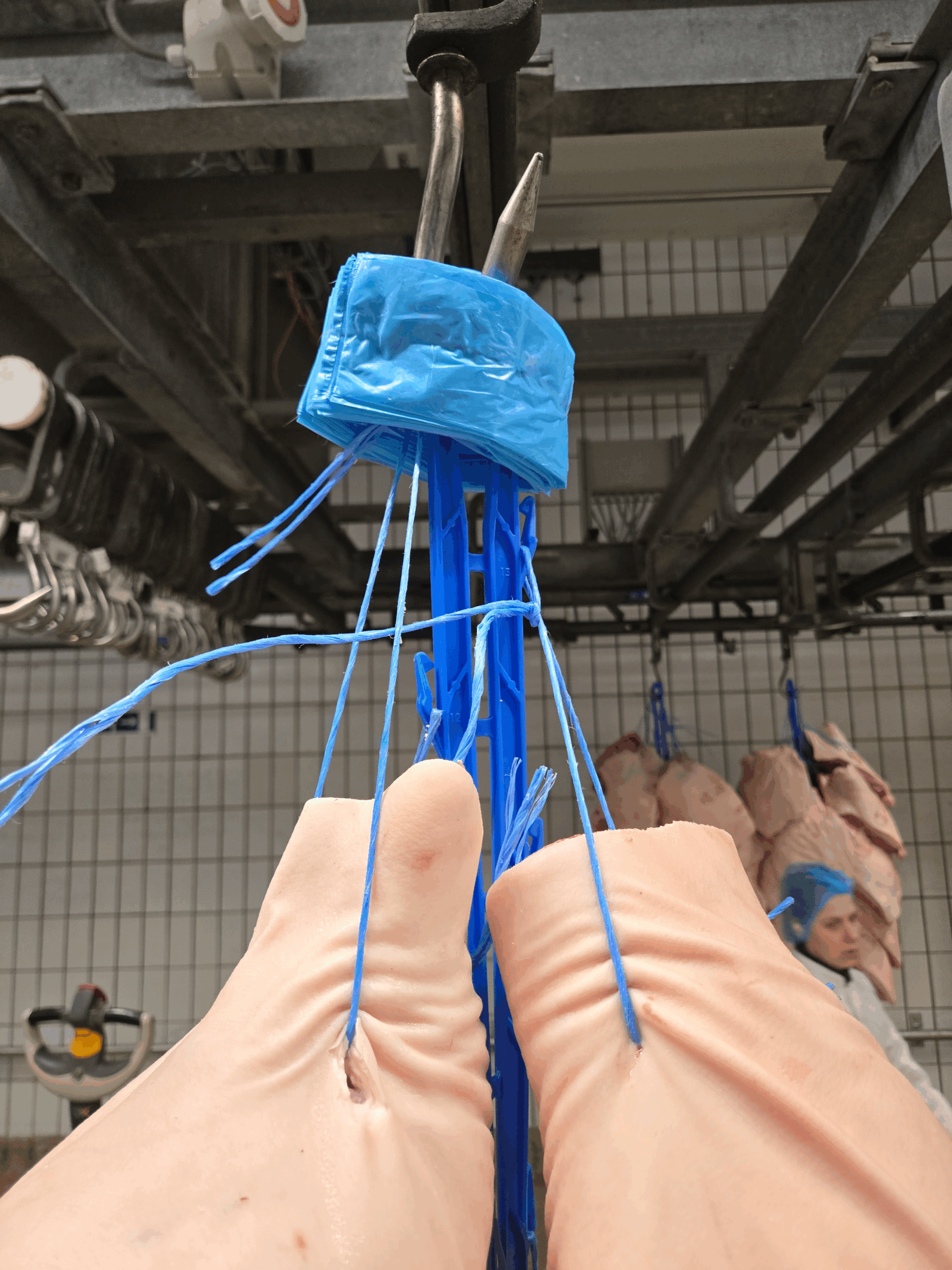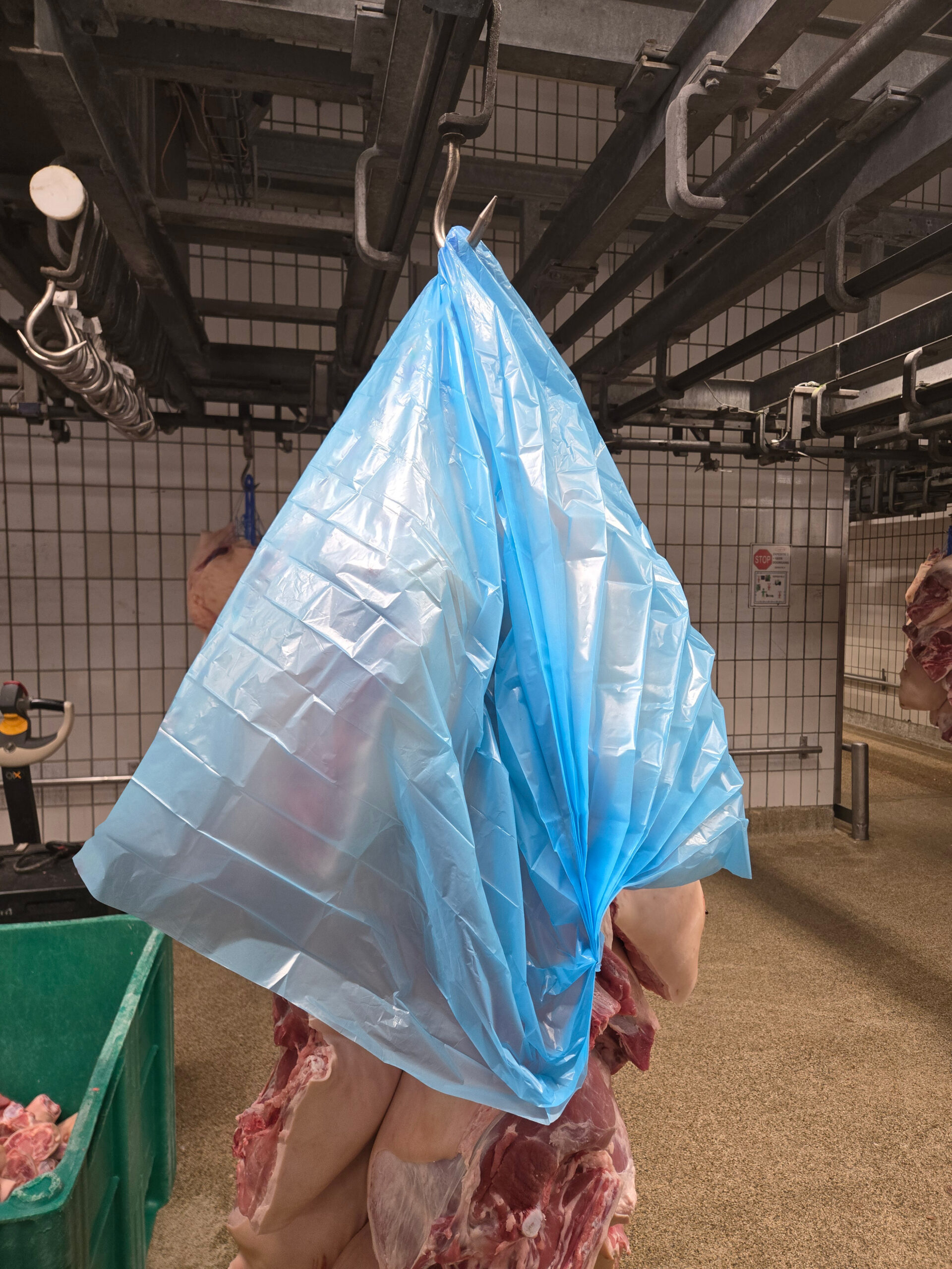 Toulex is constantly working on ideas to improve efficiency in the meat industry. We are currently developing a cleverly folded cover of plastic film, which you can attach to hangers before adding the meat parts. Once completed you can unfold the film in a split second to protect your meat from foreign bodies.